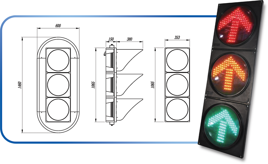 鼎光 FX300-3-DA LED方向指示信號燈采用LED發(fā)光方式,符合國標(biāo)《道路交通信號燈》(GB14887-2011)的要求,并且 通過了公安部交通安全產(chǎn)品質(zhì)量監(jiān)督檢測中心的檢測。交叉口信號燈按車道功能設(shè)置,每組信號燈為具有可顯示紅、黃、綠三 色箭頭燈和全屏燈功能的燈具,安裝附于車道下游的懸臂桿或立柱式燈桿上,燈桿基礎(chǔ)必須安裝地線,接地電阻小于或等于10 歐姆。